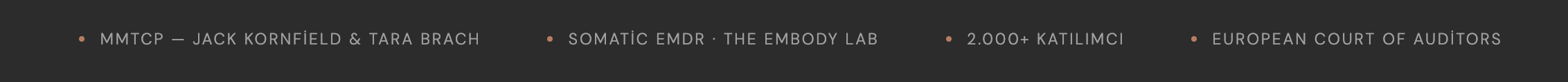 Jack Kornfield ve Tara Brach'ın MMTCP programından mezunum. Somatic EMDR ve Somatik Anksiyete sertifikalarım var.